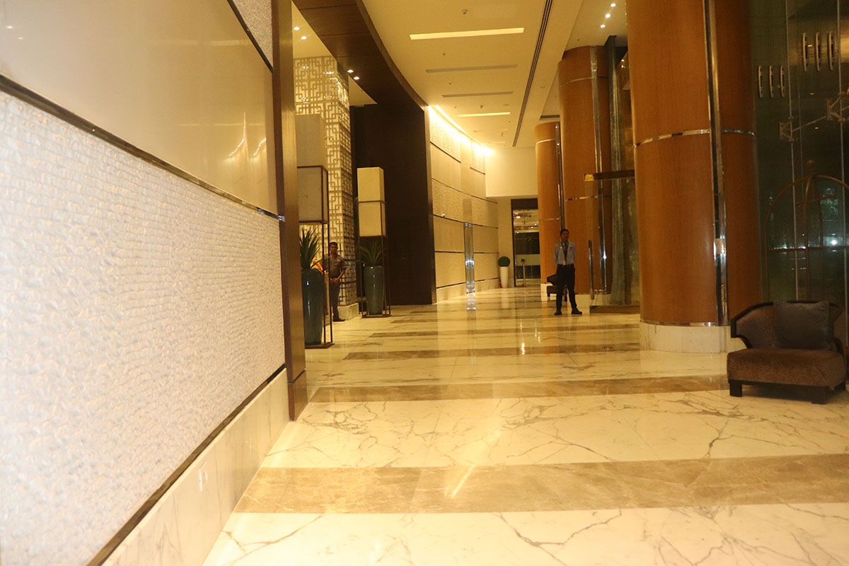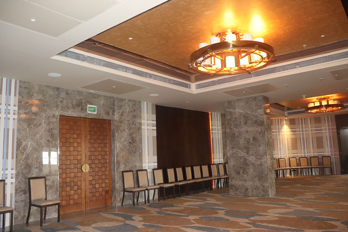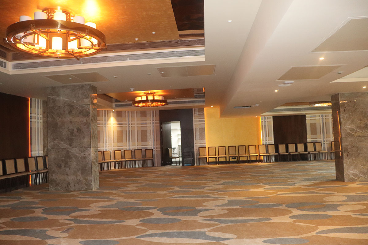 The banquet hall is designed to host everything from intimate functions to lavish soirées. Its neutral palette is paired with concealed ambient lighting, flexible layouts, and acoustic treatments—ensuring elegance and performance.