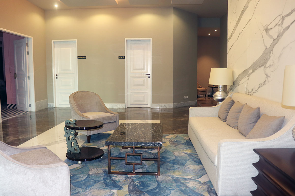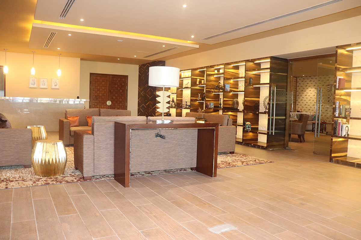 The central lobby and lounges set the tone with plush seating clusters, layered lighting, and rich material palettes—polished marble, warm-toned veneers, soft textiles, and sculptural lighting pieces. A beautifully backlit display wall and artful accents infuse character and texture, making every corner feel curated and complete.