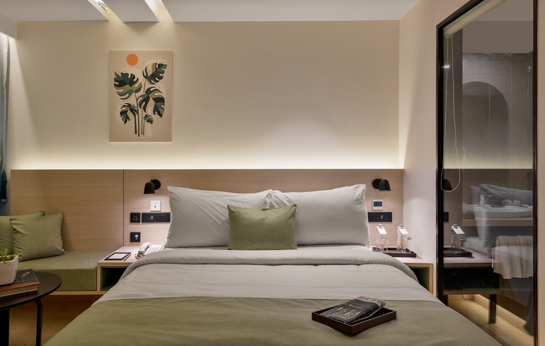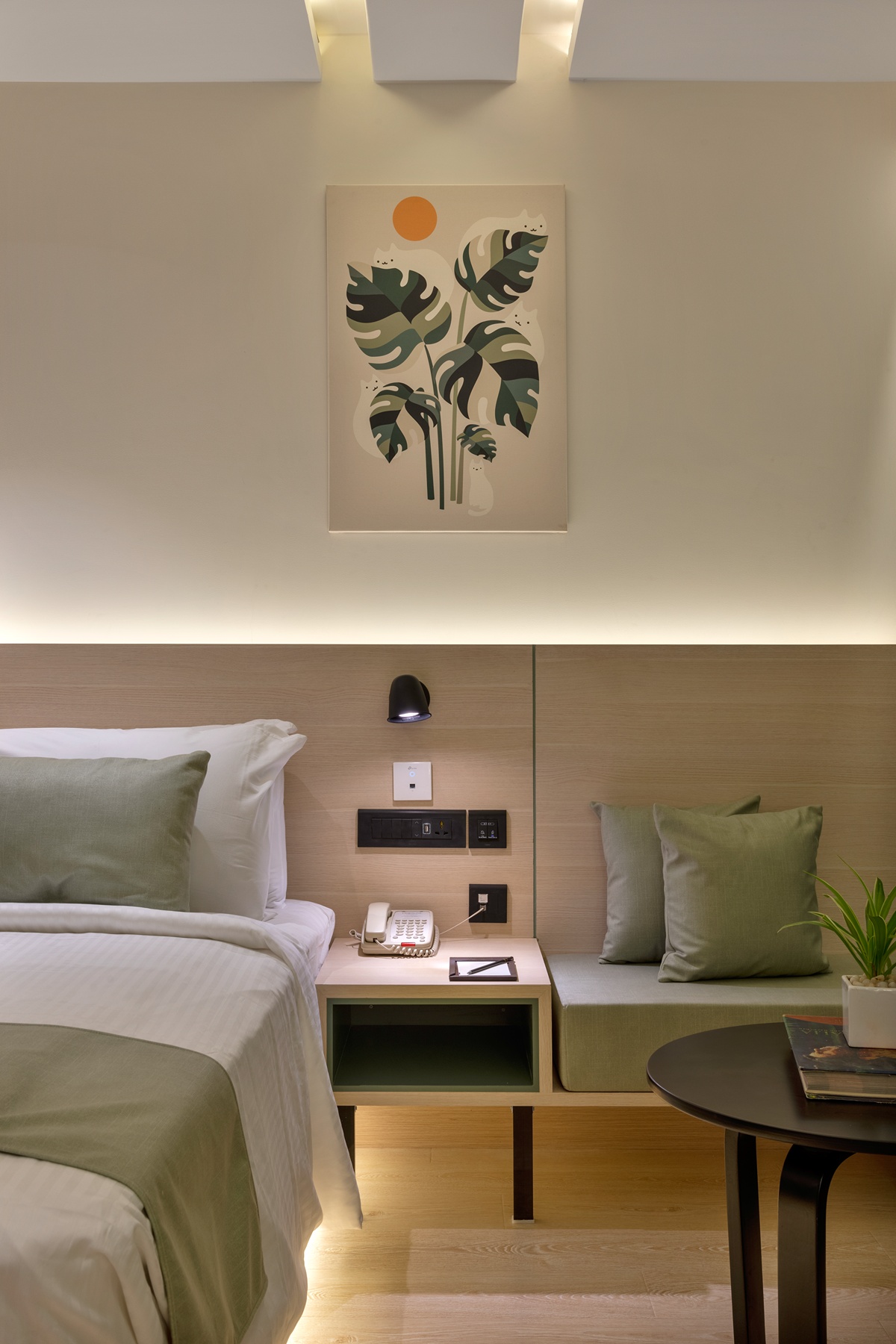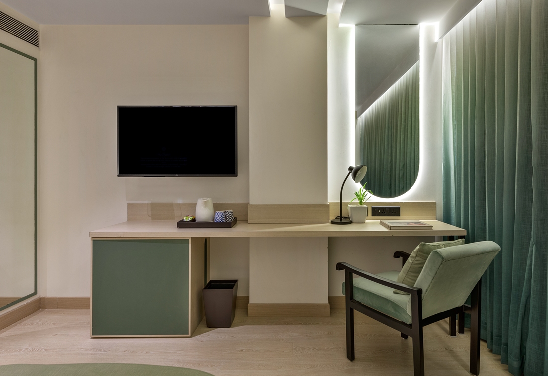 The new guest room design palette evokes cosy luxury using sage-green accents and beech‑wood finishes across guest rooms—creating a soothing, residential ambience within a business‑hotel setting. The rooms are smartly appointed for guest comfort with workstations, minibars, tea/coffee makers, and plush bedding, ensuring they meet the needs of both leisure and corporate travellers.
