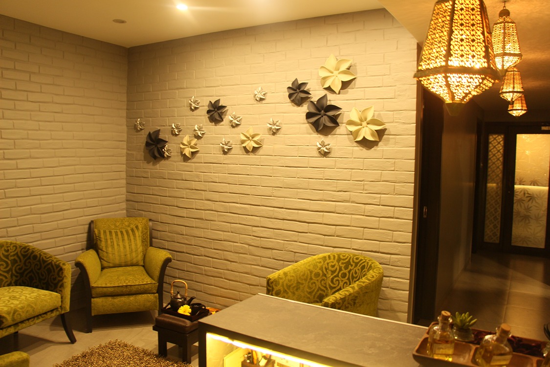 The interior design of this 1200 sqft spa facility gracefully merges wellness with contemporary Indian artistry, creating a haven that feels both grounded and elevated.